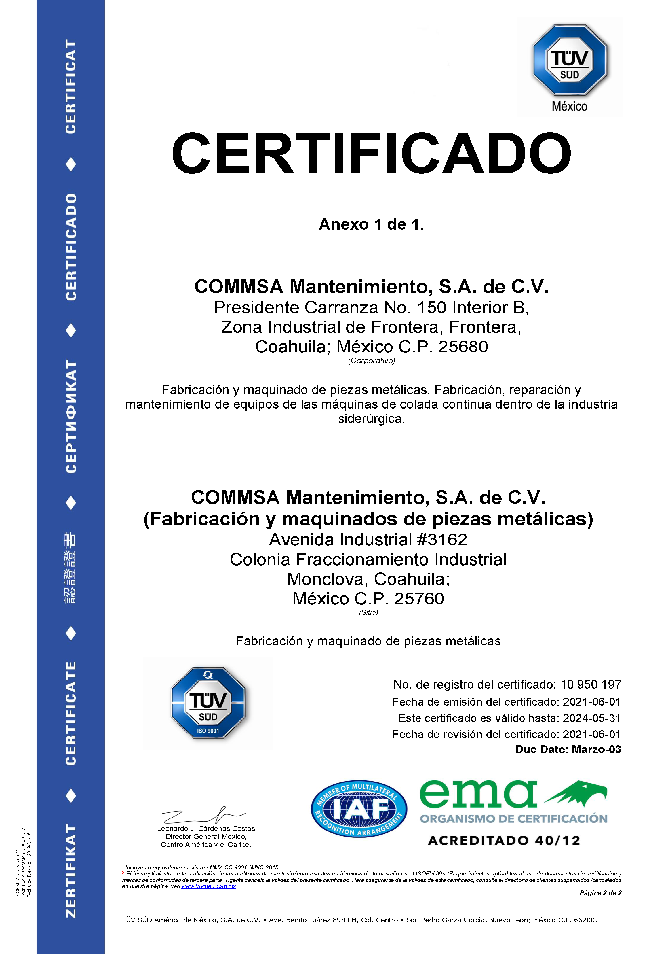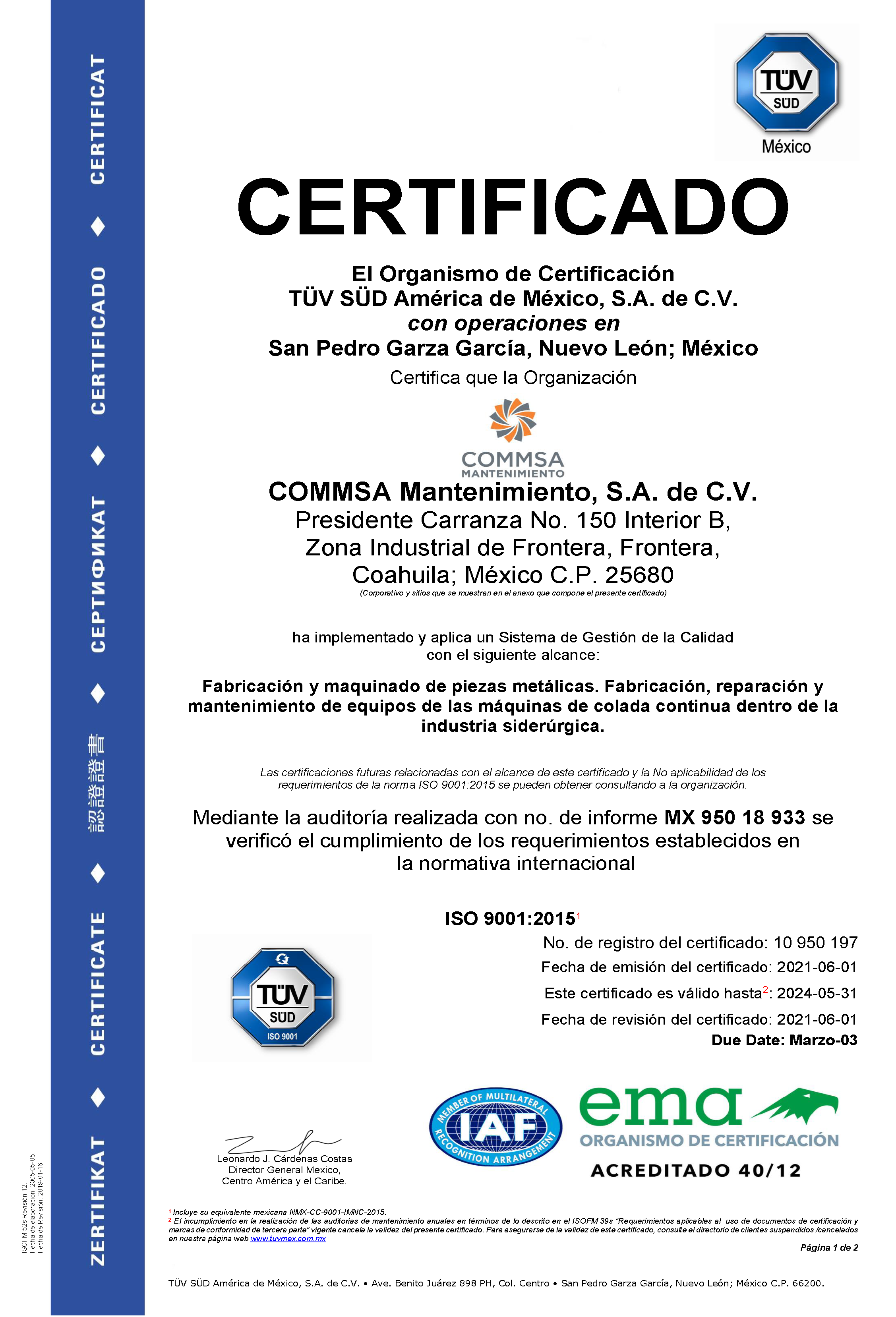 Todas nuestras operaciones están bajo la certificación de la norma de calidad ISO 9001:2015.